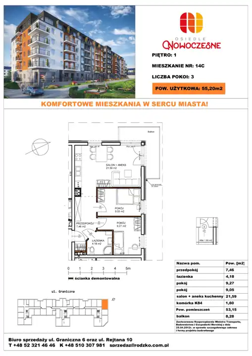 - Charakterystyka mieszkania 55.2 m2, 3 pokoje