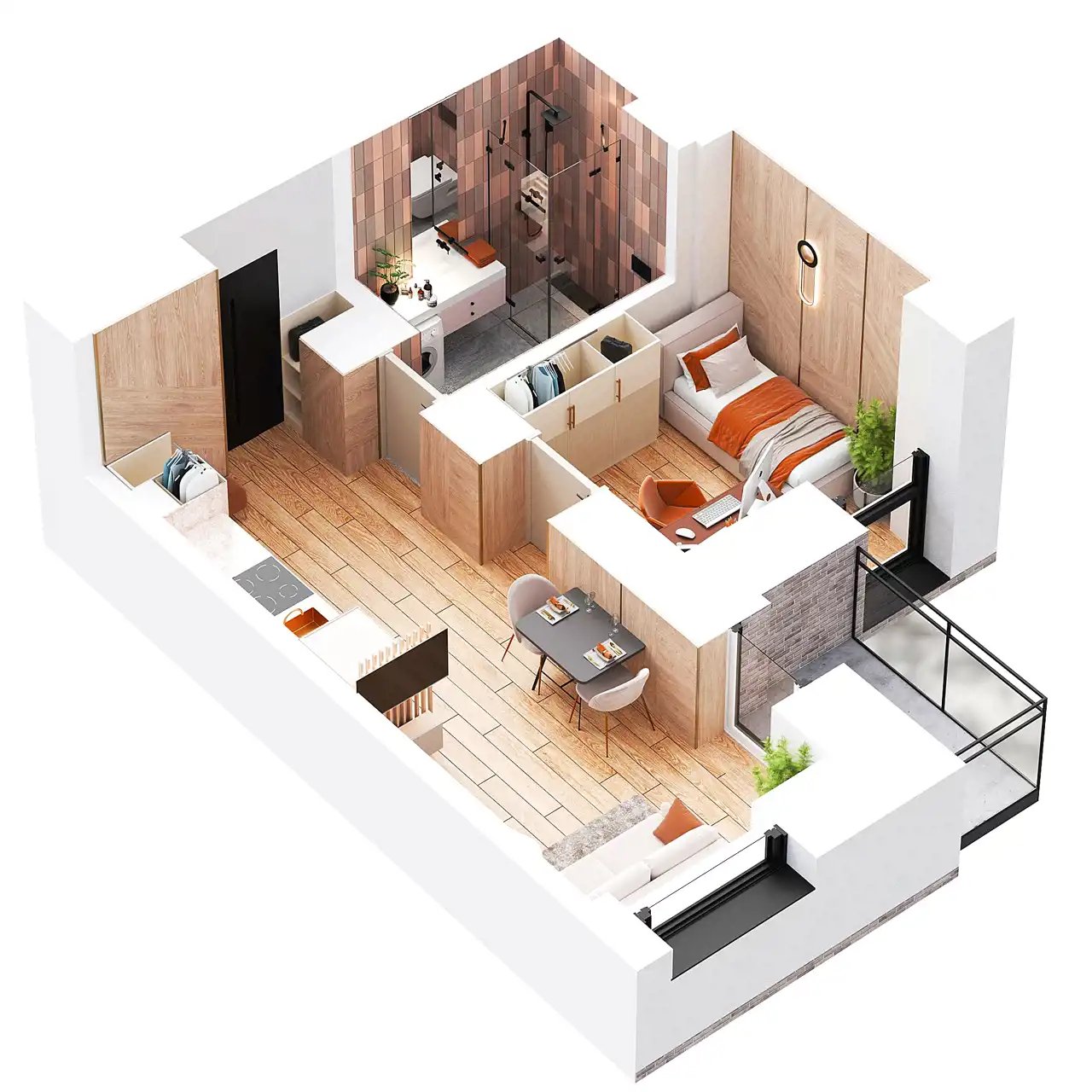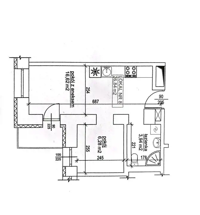 - Charakterystyka mieszkania 26.84 m2, 2 pokoje
