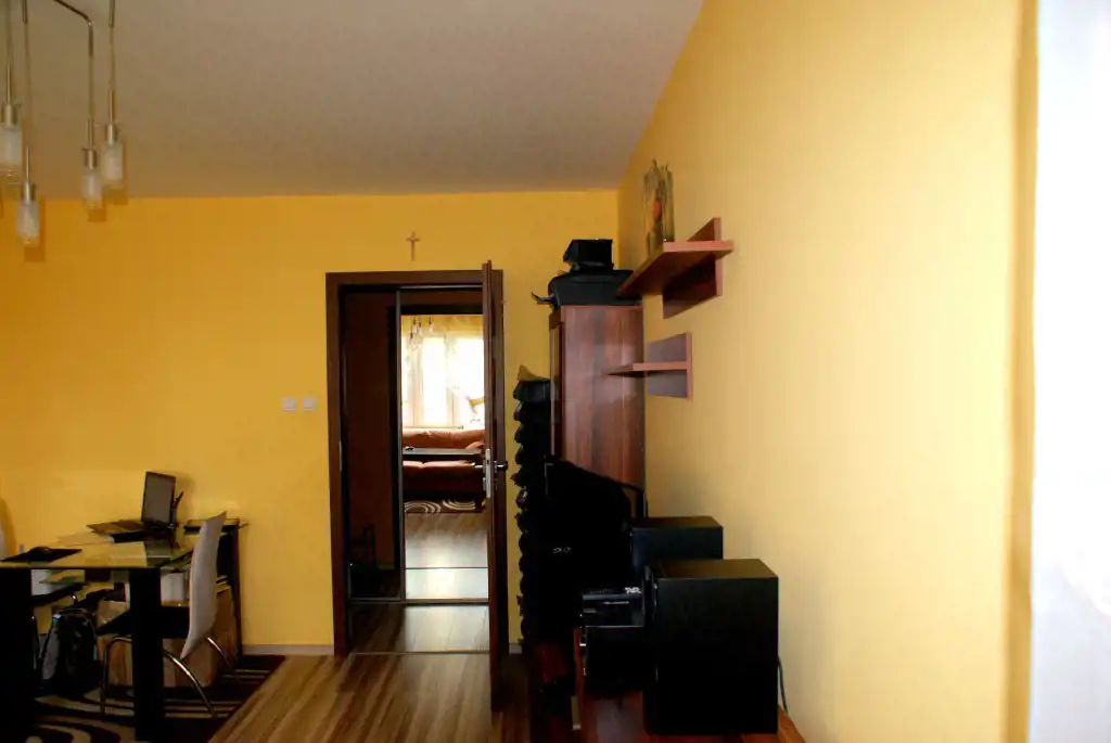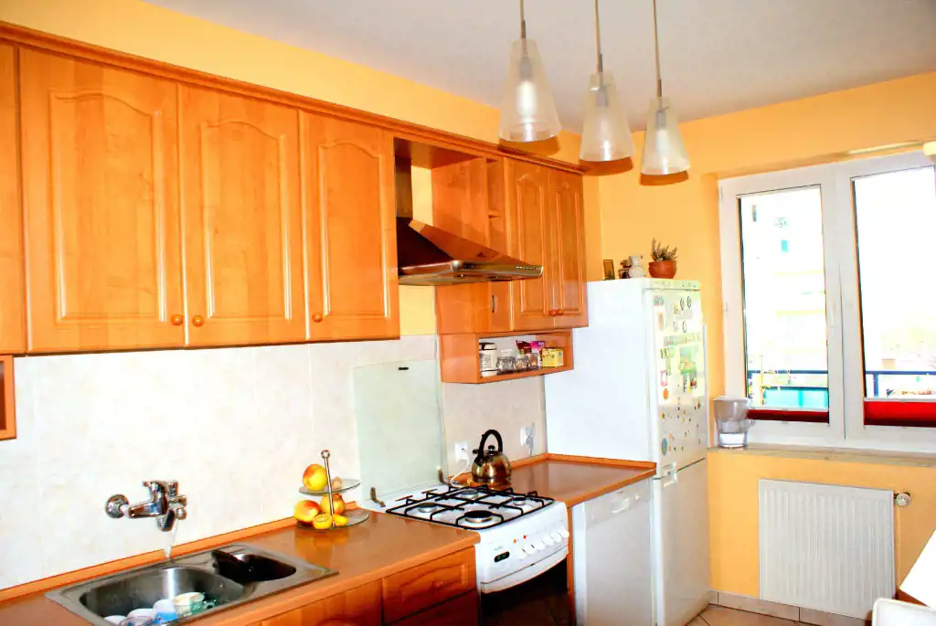 Mieszkanie bardzo dobrym stanie, nie wymaga dodatkowych wkładów finansowych. Okna PCV. W mieszkaniu na podłogach znajdują się panele, ściany wykończone są w gładzi. Kuchnia oddzielna z możliwością stworzenia aneksu, w pełnej zabudowie kuchennej, z wyposażeniem: lodówką, kuchenką i zmywarką. Łazienka połączona jest z wc. Wykończenie w glazurze, wyposażona w wannę. Wymieniona wewnętrzna stolarka drzwiowa. Do mieszkania przynależy balkon oraz piwnica.