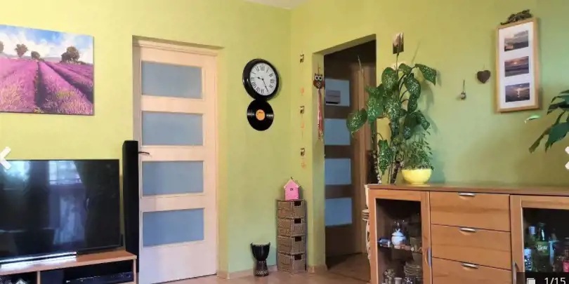 Salon o powierzchni 15m2, sypialnia 1 o powierzchni ok. 9m2, sypialnia 2 o powierzchni ok. 8m2, sypialnia 3 o powierzchni ok. 12m2. Łazienka z wc ok. 3,5m2. Kuchnia ok. 5m2.
