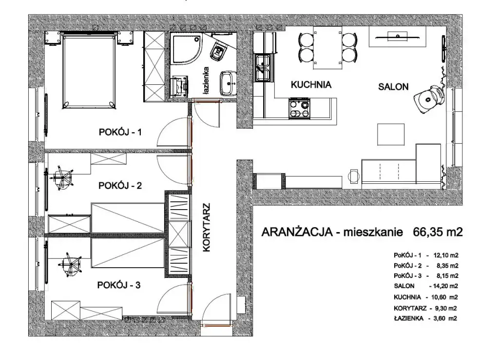- Charakterystyka mieszkania 66.5 m2, 4 pokoje