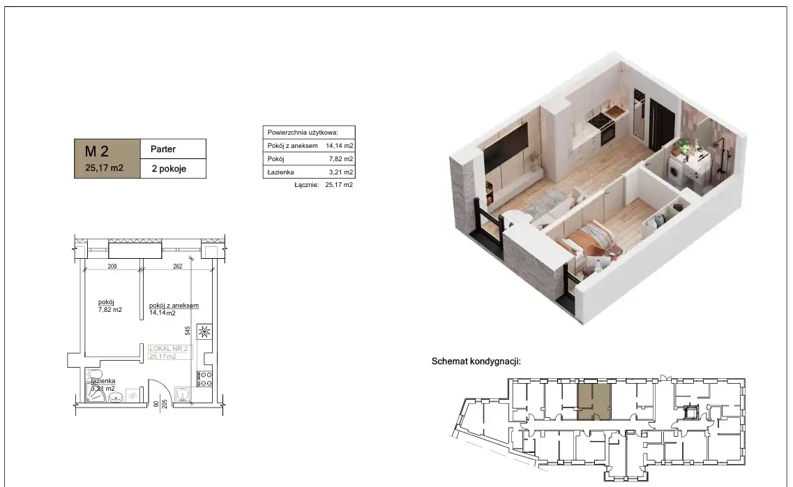 - Charakterystyka mieszkania 25.17 m2, 2 pokoje