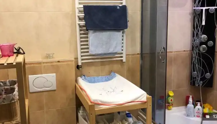 - sporej i przestronnej łazienki - prysznic, umywalka i toleta, kaloryfer do ręczników, dwie szafki wiszące (nieuwidocznione na zdjęciu),