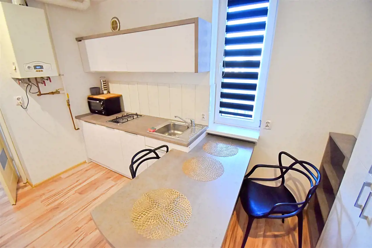 Mieszkanie o powierzchni użytkowej 34 m2 składa się z jednego pokoju, aneksu kuchennego, przedpokoju oraz łazienki z wc. Całość gotowa do zamieszkania od zaraz. Kuchnia umeblowana i wyposażona w sprzęt AGD. W cenie pozostaje całe umeblowanie i wyposażenie widoczne na zdjęciach.