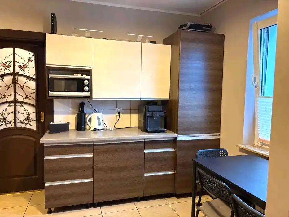 Aneks kuchenny wyposażony jest w zabudowę meblową, zapewniającą wygodę i funkcjonalność. Łazienka sprzedawana jest z pełnym wyposażeniem, w tym z pralką. W korytarzu znajduje się pojemna szafa w zabudowie oraz szafka widoczna na zdjęciach, co zapewnia dodatkowe miejsce do przechowywania.