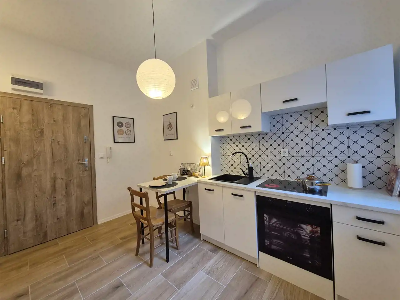 - funkcjonalny układ pomieszczeń – przestronny pokój dzienny, osobna kuchnia, łazienka z prysznicem, przedpokój,