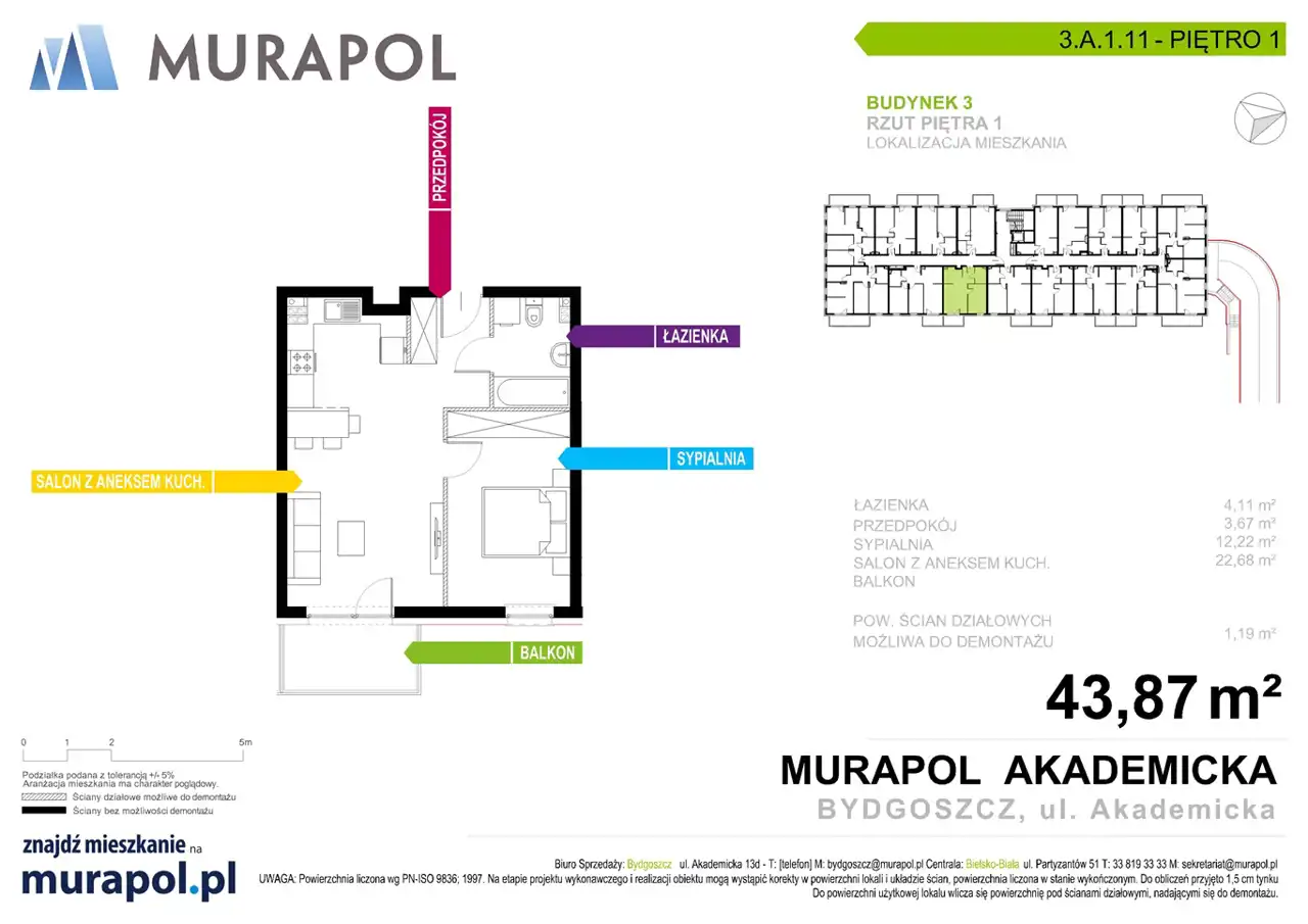 - Charakterystyka mieszkania 43.87 m2, 2 pokoje