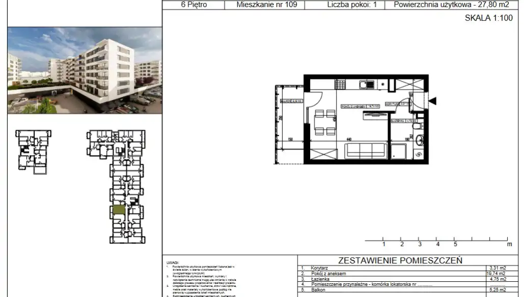 - Charakterystyka mieszkania 27.94 m2, 1 pokój