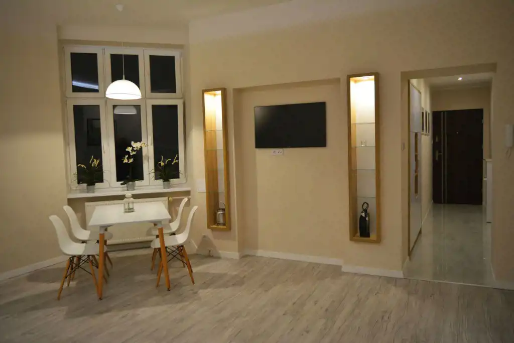 Standard wykończenia : ogrzewanie CO miejskie (nowe grzejniki ), instalacja WK (ciepła woda z sieci miejskiej), wymieniona nowa instalacja elektryczna, TV z osprzętem, oprawami oraz rozdzielnia.