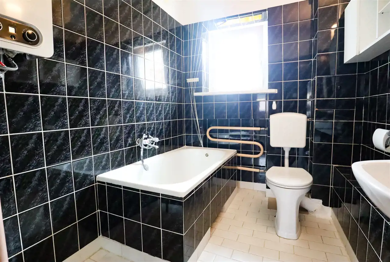 * w łazience znajduje się okno