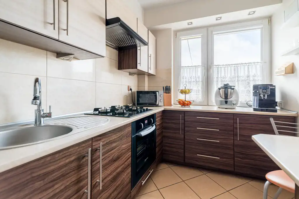 W cenie mieszkania meble w zabudowie stałej oraz zabudowa kuchenna.
