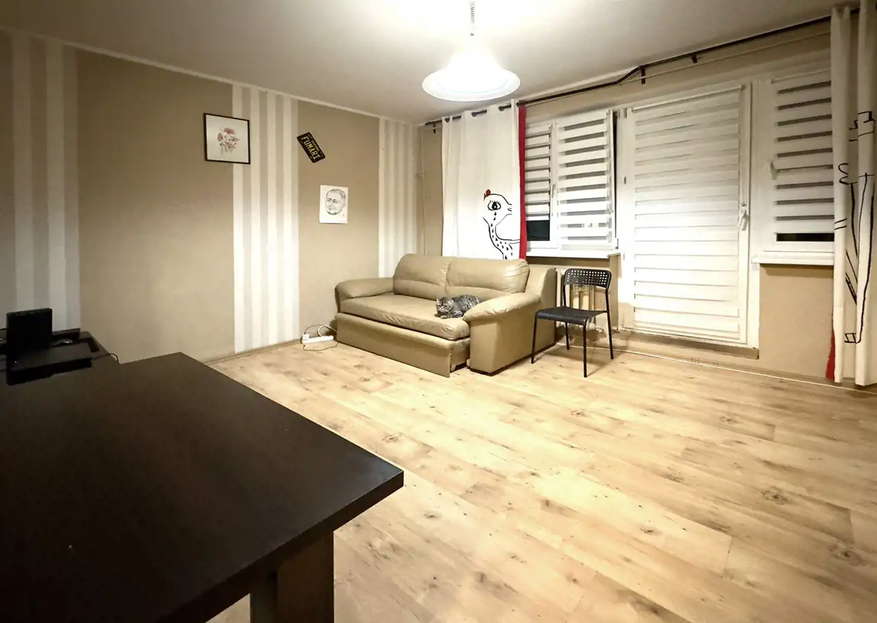 - Pomieszczenia: dwa rozkładowe pokoje, oddzielna kuchnia, przedpokój, łazienka i osobna toaleta.