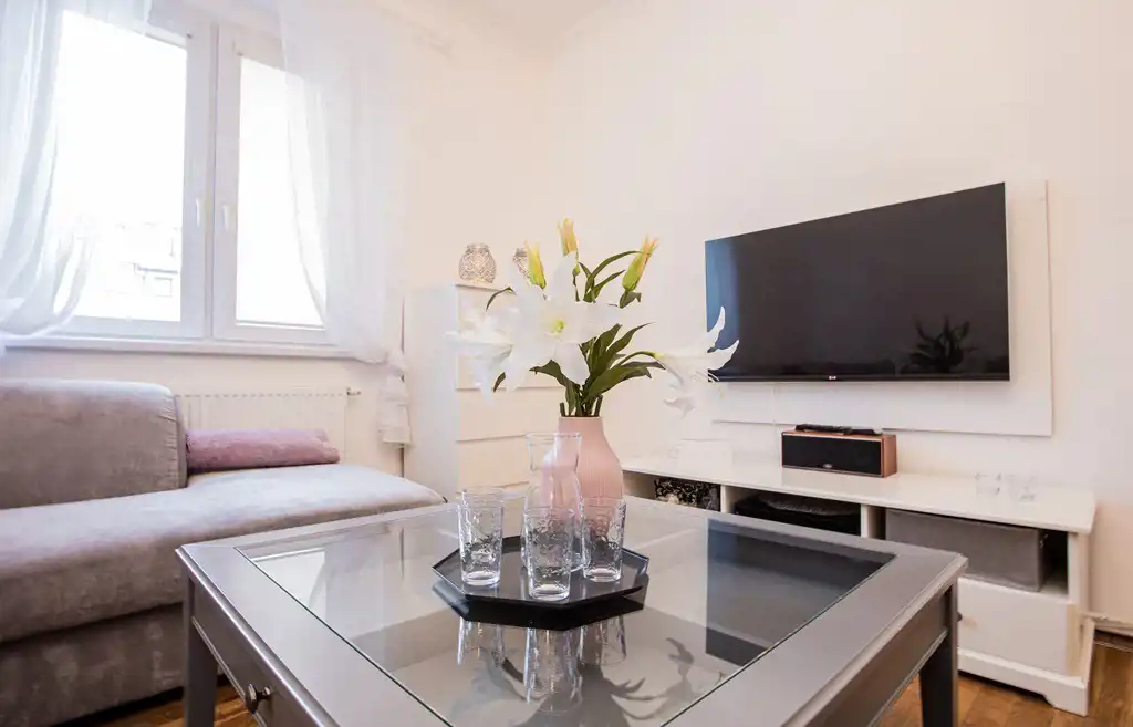 W cenie mieszkania wyposażenie widoczne na zdjęciach wraz ze sprzętem AGD i RTV.