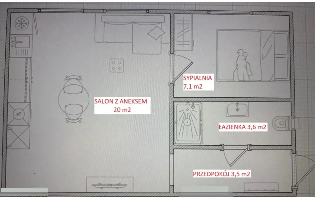- przedpokój (3,5 m²)