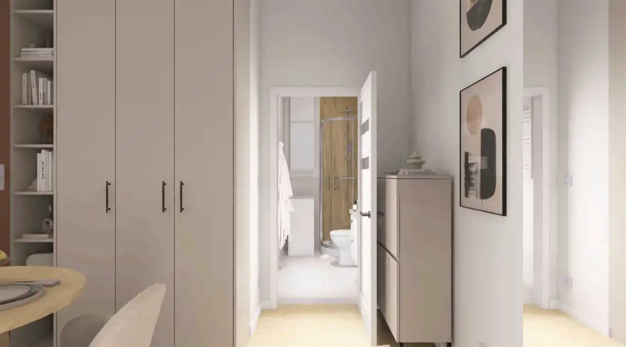 Kuchnia została wyposażona w zabudowę wykonaną na wymiar przez stolarza, co gwarantuje maksymalne wykorzystanie przestrzeni oraz estetyczny, nowoczesny wygląd. W cenie mieszkania jest pełne wyposażenie AGD: lodówka, płyta indukcyjna, okap, zmywarka oraz piekarnik — wszystko nowe i nieużywane. To ogromna zaleta zarówno dla osób kupujących na własne potrzeby, jak i inwestorów planujących szybki wynajem.