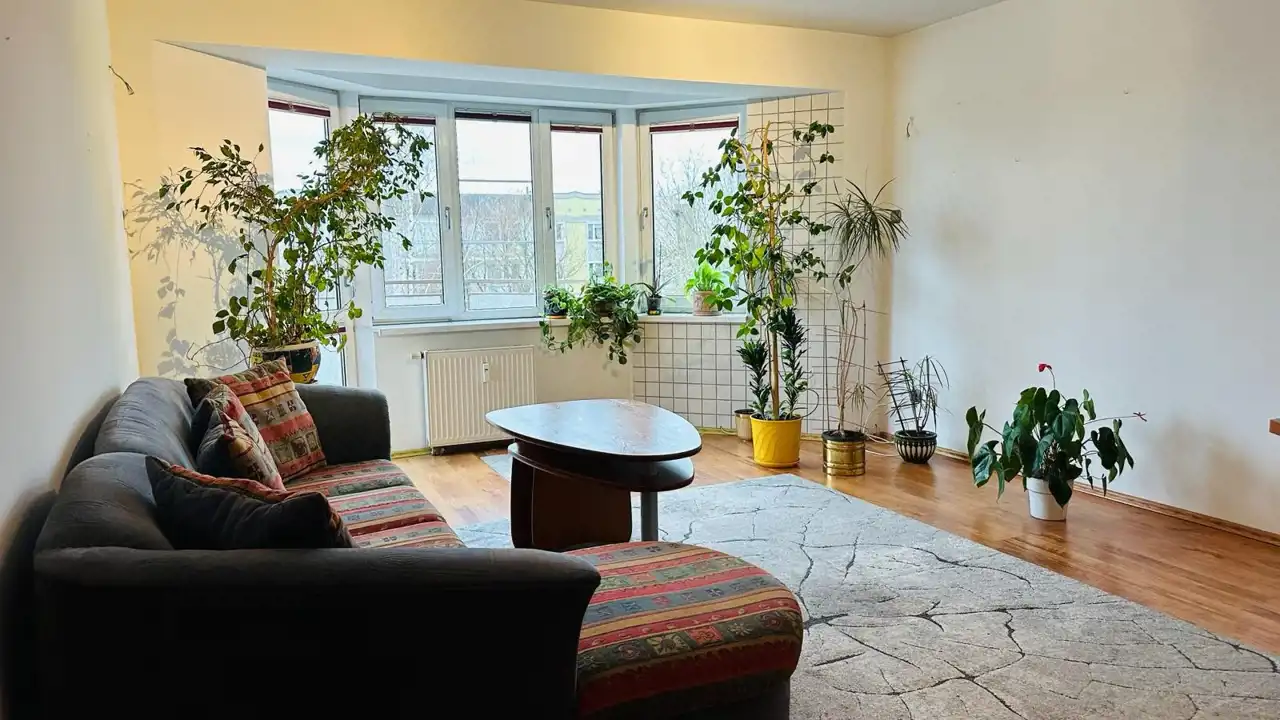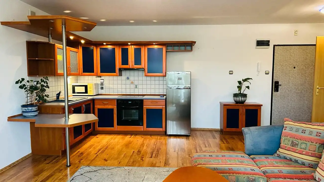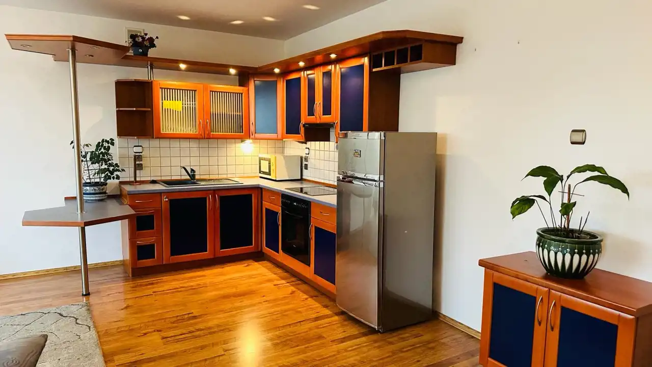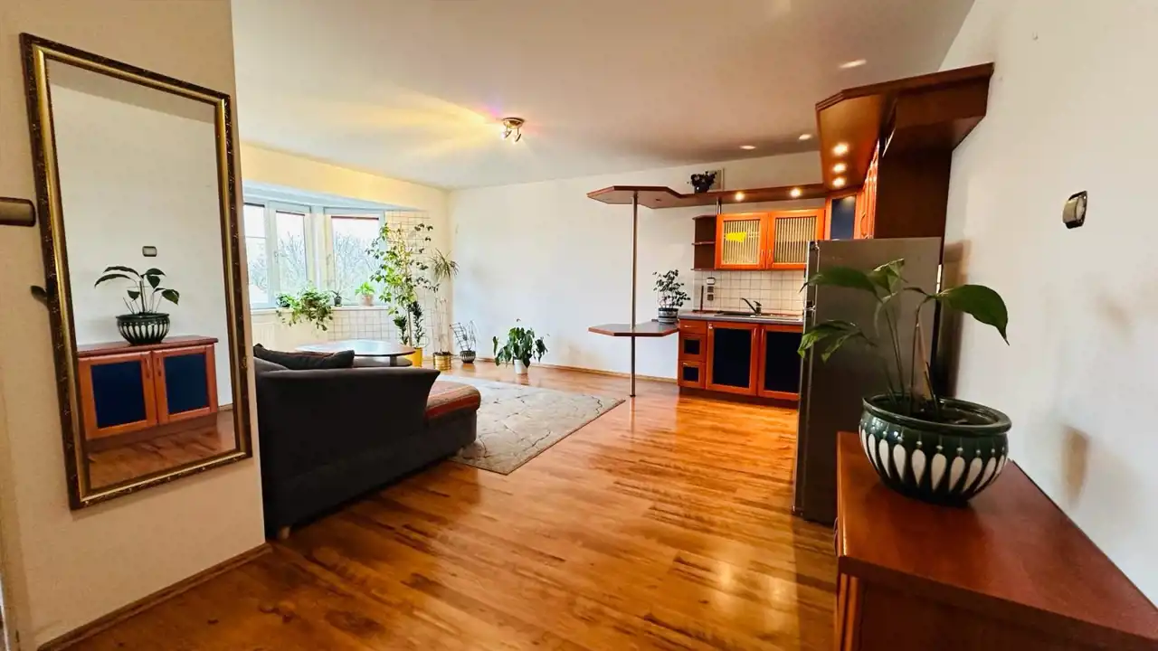 Mieszkanie o powierzchni 44,8m składa się z przestronnego , jasnego , 30m salonu z wykuszem idealnym na strefę wypoczynku. Salon ten jest połączony z kuchnią na wymiar w której pozostaje wyposażenie .