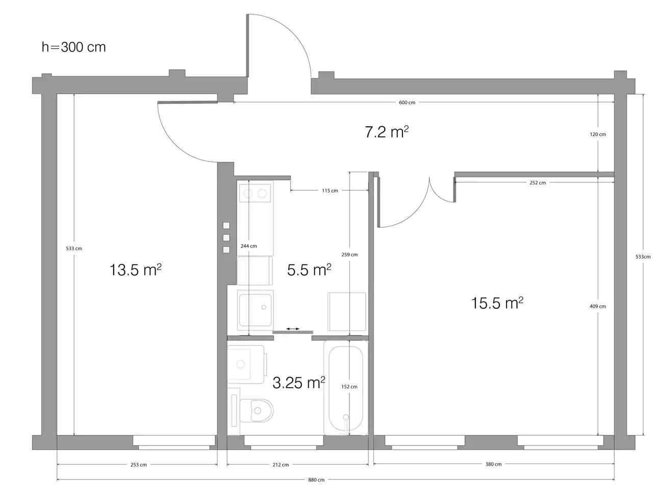 - Charakterystyka mieszkania 46.06 m2, 2 pokoje