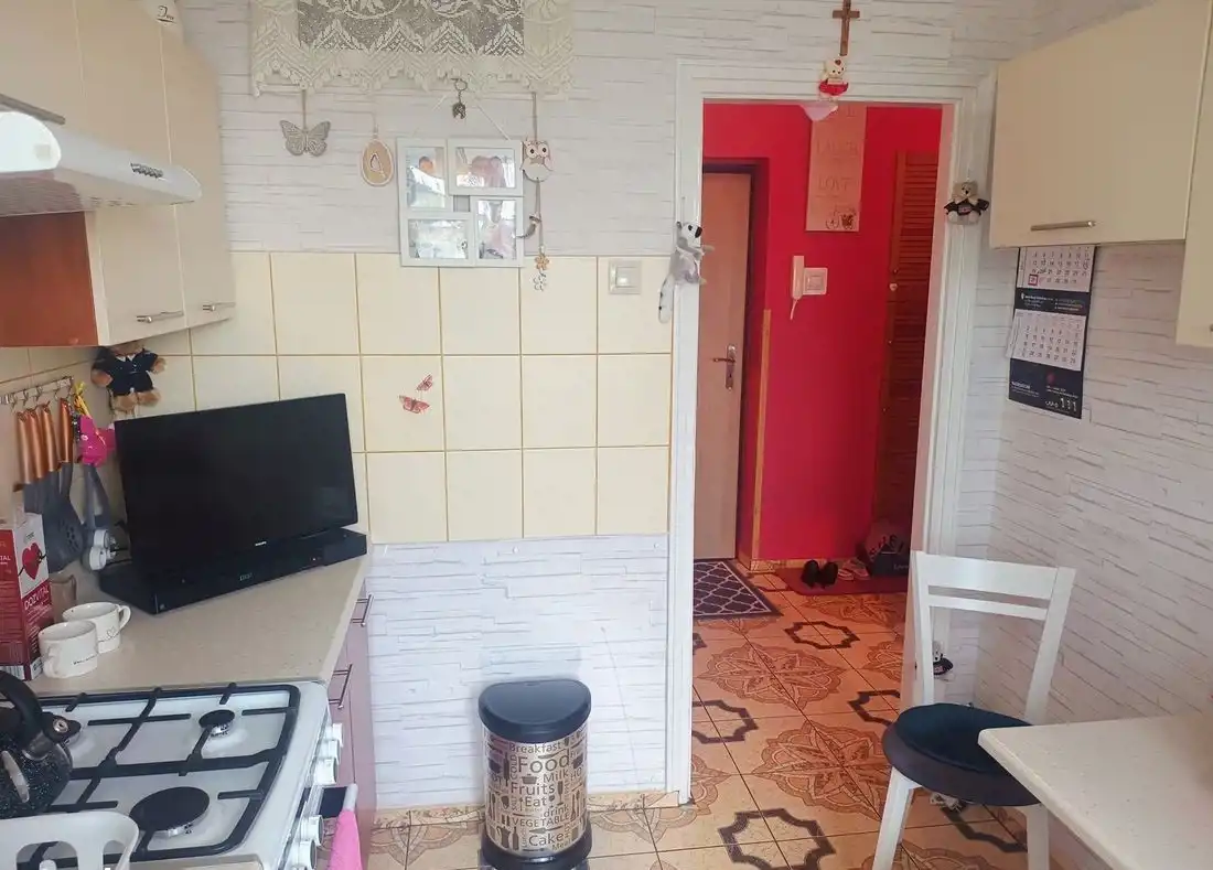 Mieszkanie w bloku z cegły na drugim piętrze.