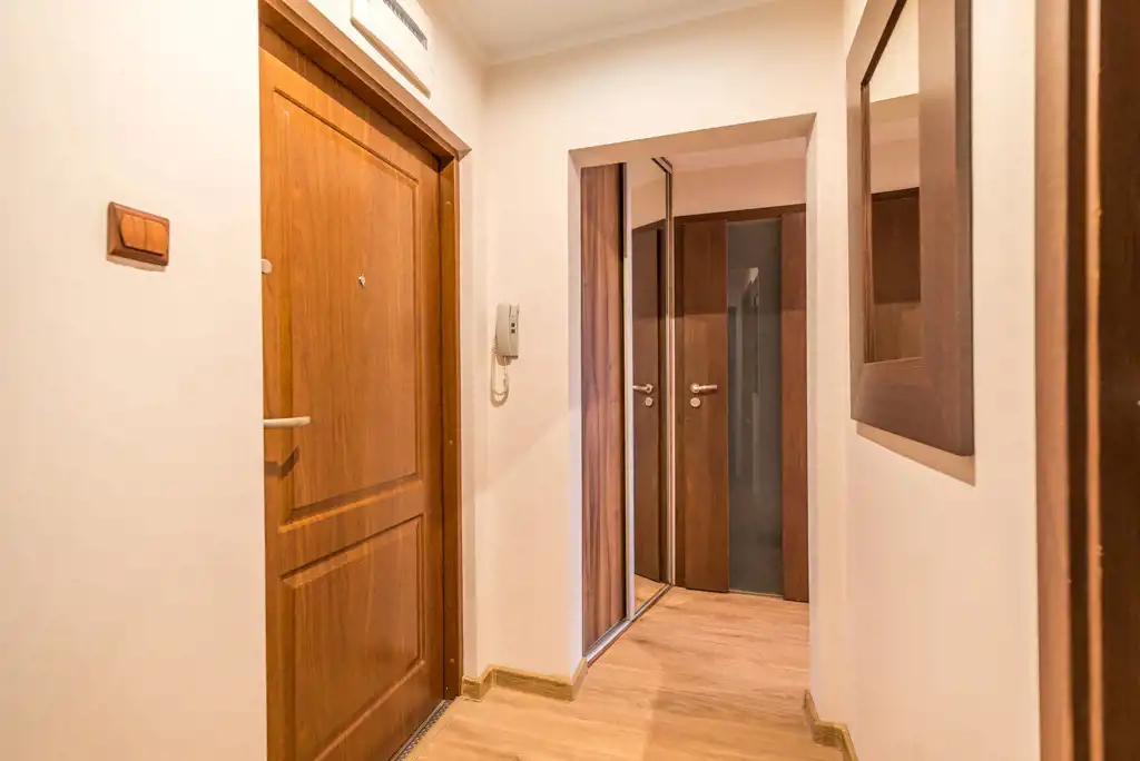 - Nowe drzwi wejściowe – solidne, wysokiej jakości drzwi antywłamaniowe zapewniające bezpieczeństwo i spokój.