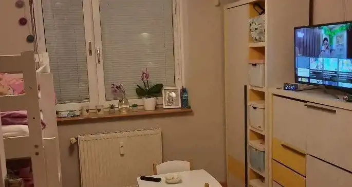 Mieszkanie to dwa pokoje o powierzchniach: 10 i 17,5m2 oraz kuchnia ok 9m2. Mieszkanie jasne na dwie strony bloku - stronę północną oraz południowo-zachodnią. Przy bloku duży plac zabaw z liczną zielenią. Z balkonu widok na zieleń. Przy bloku miejsce parkingowe, blok odgrodzony z przodu szlaban z tyłu płot. Do mieszkania przynależy piwnica ok 3m2. Bardzo blisko do przedszkola i szkoły, oraz kościoła.