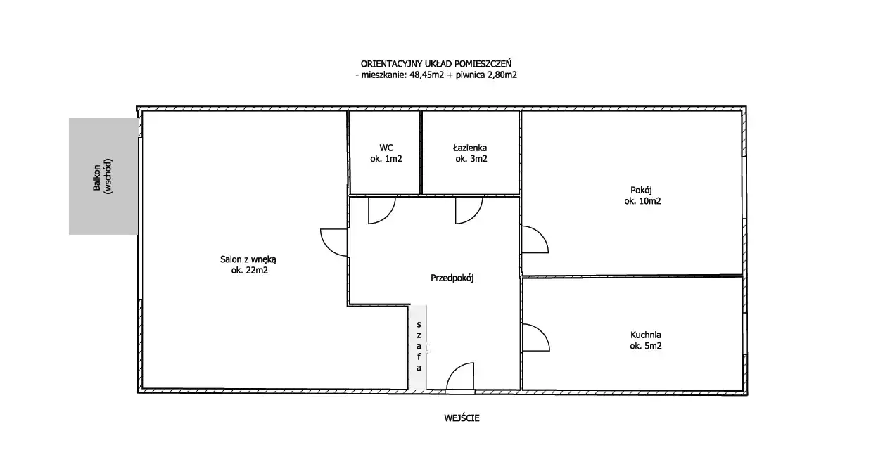 Mieszkanie składa się z dwóch dużych pokoi, osobnej kuchni, łazienki i wc. W dużym pokoju wnęka, która ma sporo możliwości aranżacyjnych. Mieszkanie w pełni opomiarowane - płacimy tylko za faktyczne zużycie ciepła.