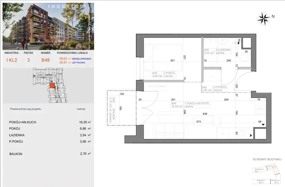 Mieszkanie B48 to esencja nowoczesnego projektowania – harmonijne proporcje, logiczny układ, światło grające po ścianach. Tutaj prostota ma wymiar elegancji, a funkcjonalność staje się stylem życia. Zaprojektowane zgodnie z normą PN-ISO 9836:2022-07, wykończone w standardzie deweloperskim, z możliwością indywidualnej aranżacji – gotowe, by stało się Twoją własną historią.