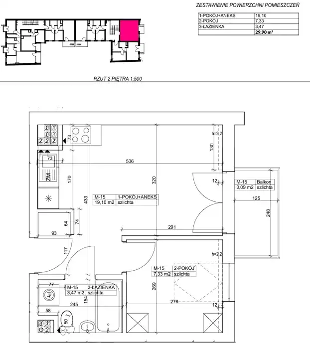 - Charakterystyka mieszkania 29.9 m2, 2 pokoje