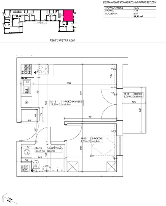 - Rozkład mieszkania 2p piętro