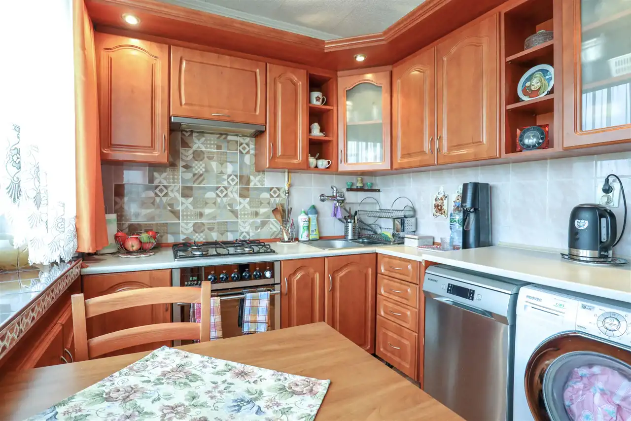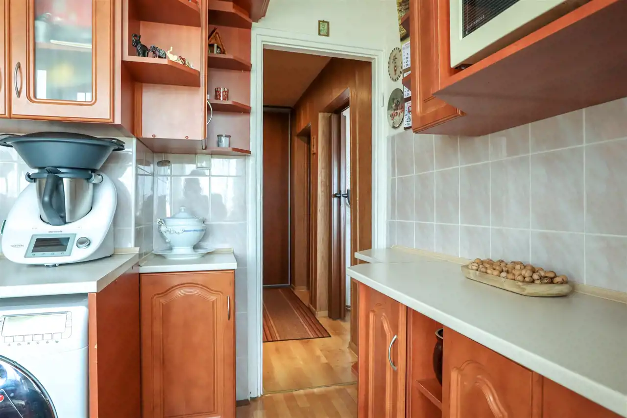 Duża kuchnia z elegancką zabudową, spełni marzenie każdego miłośnika gotowania, a jasna łazienka tworzy atmosferę spokoju i relaksu.