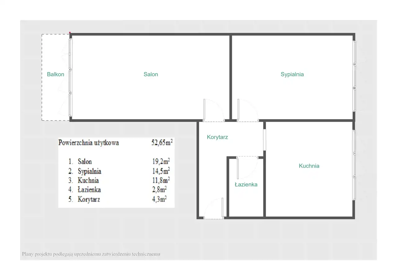 - Charakterystyka mieszkania 52.65 m2, 2 pokoje