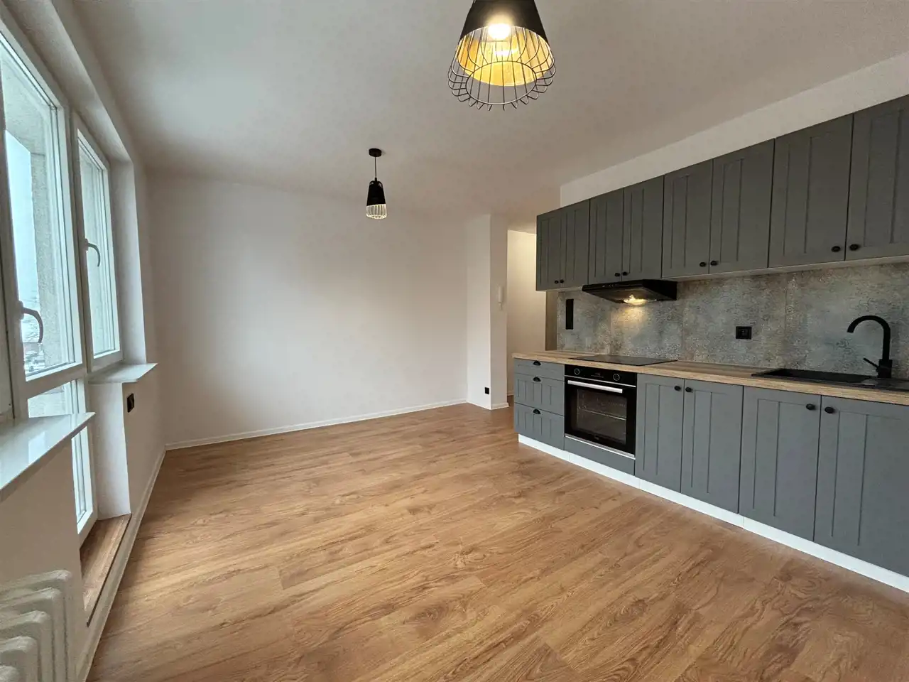 Okna wychodzą na dwie strony świata co zapewnia naturalne światło o różnych porach dnia i dobrą cyrkulację powietrza.