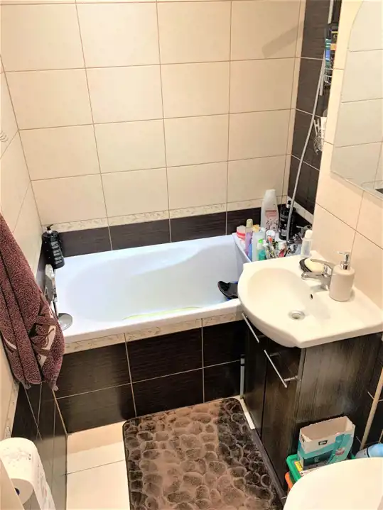 ŁAZIENKA Z WC o pow. 2,6m2. - wanna, glazura, wanna, lustro, umywalka.