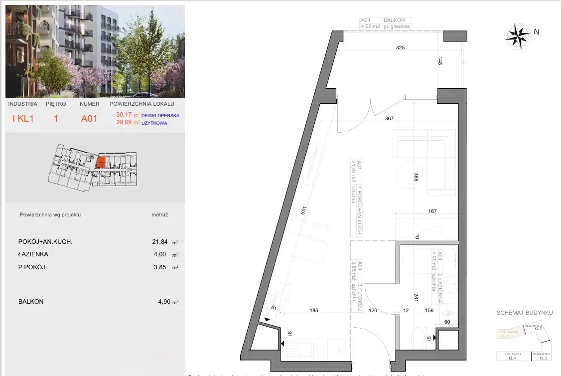 - Charakterystyka mieszkania 29.69 m2, 1 pokój