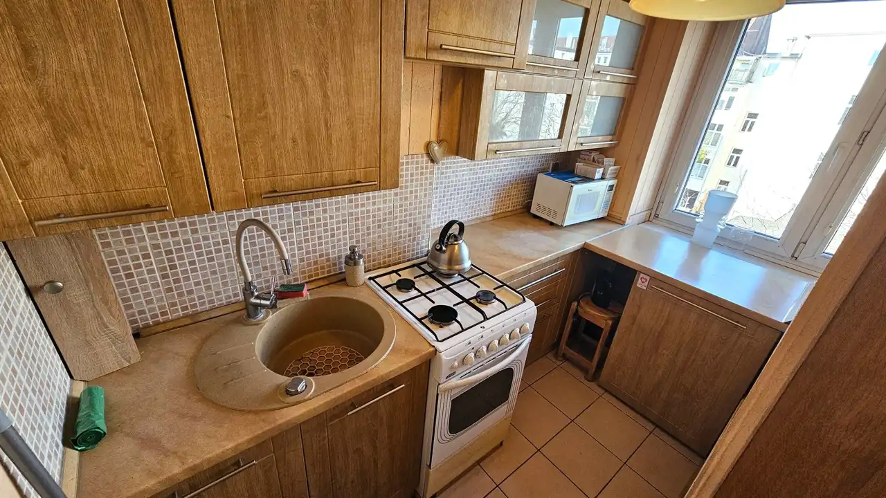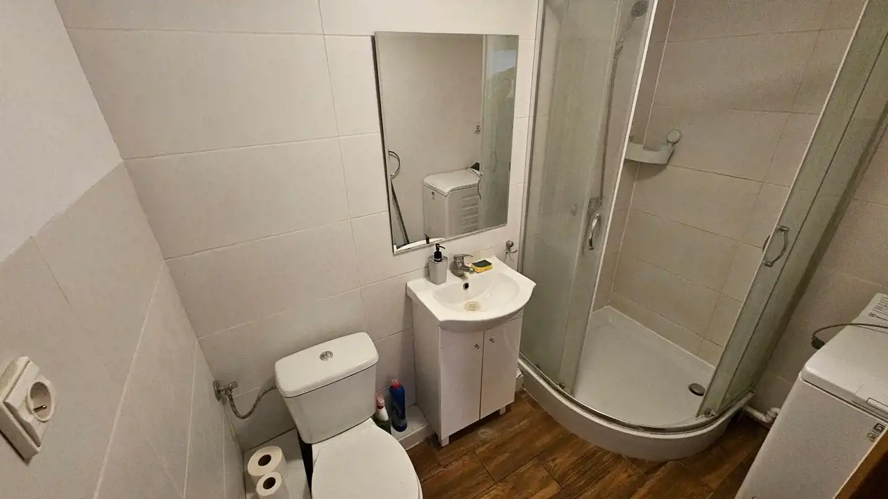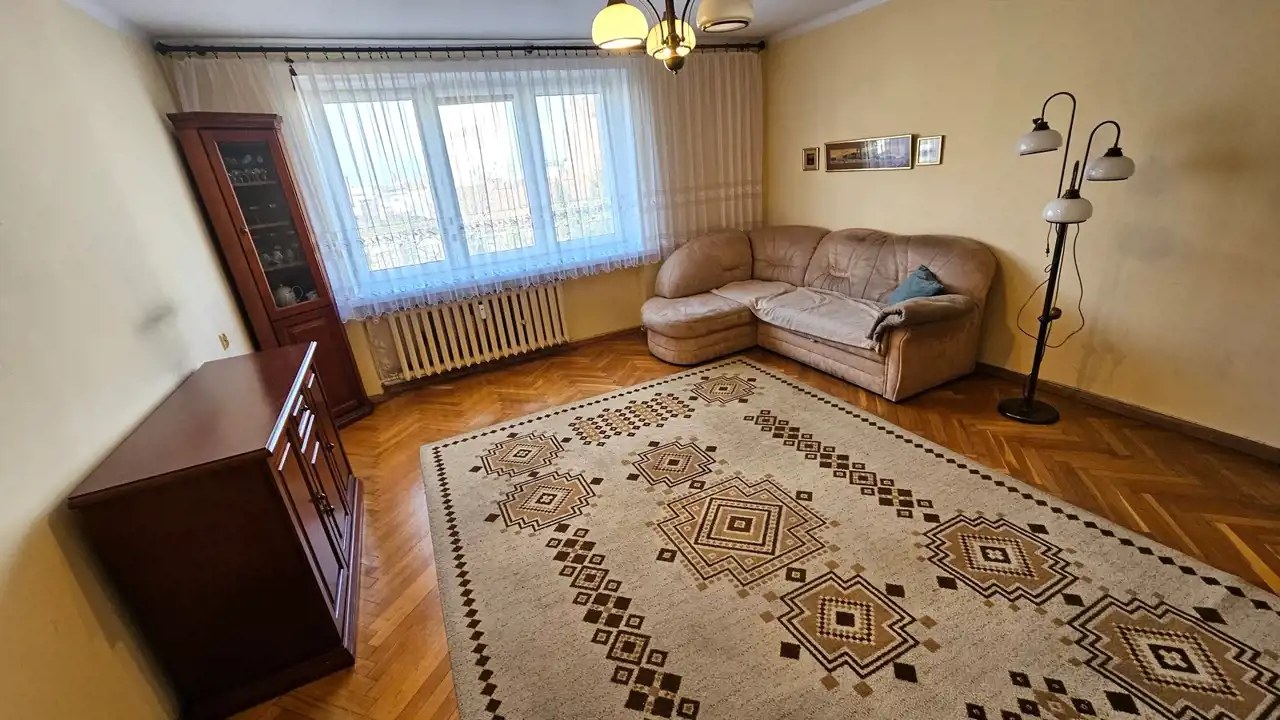 Mieszkanie zadbane i czyste. Panele podłogowe, parkiet i kafle na podłogach, gładzie. Duży salon. Dodatkowa jadalnia obok kuchni. Jasna łazienka z kafelkami na podłodze i ścianach. Kabina prysznicowa, umywalka, pralka. Przedpokój. Parkiet i gładzie. Duża kuchnia. W kuchni kafelki, zabudowa wraz z kuchenką i okapem pozostaje. Kuchenka gazowa, piekarnik elektryczny, lodówka, okap, mikrofala. Ogrzewanie i ciepła woda miejskie. Ogrzewanie w czynszu. Blok docieplony. Zabudowa i wyposażenie kuchni i łazienki w większości pozostają. Meble do uzgodnienia.