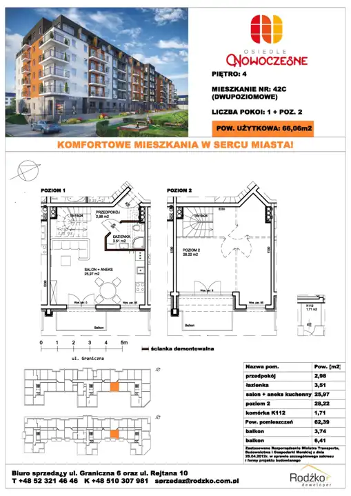 - Charakterystyka mieszkania 66.06 m2, 2 pokoje