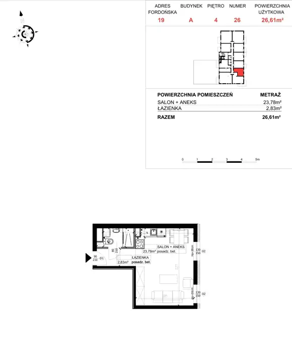 - Charakterystyka mieszkania 26.61 m2, 1 pokój