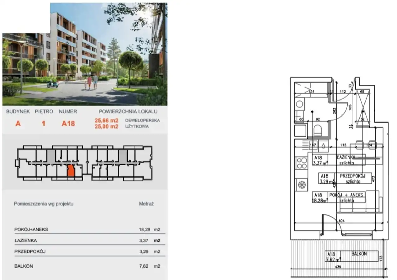 - Charakterystyka mieszkania 25.32 m2, 1 pokój
