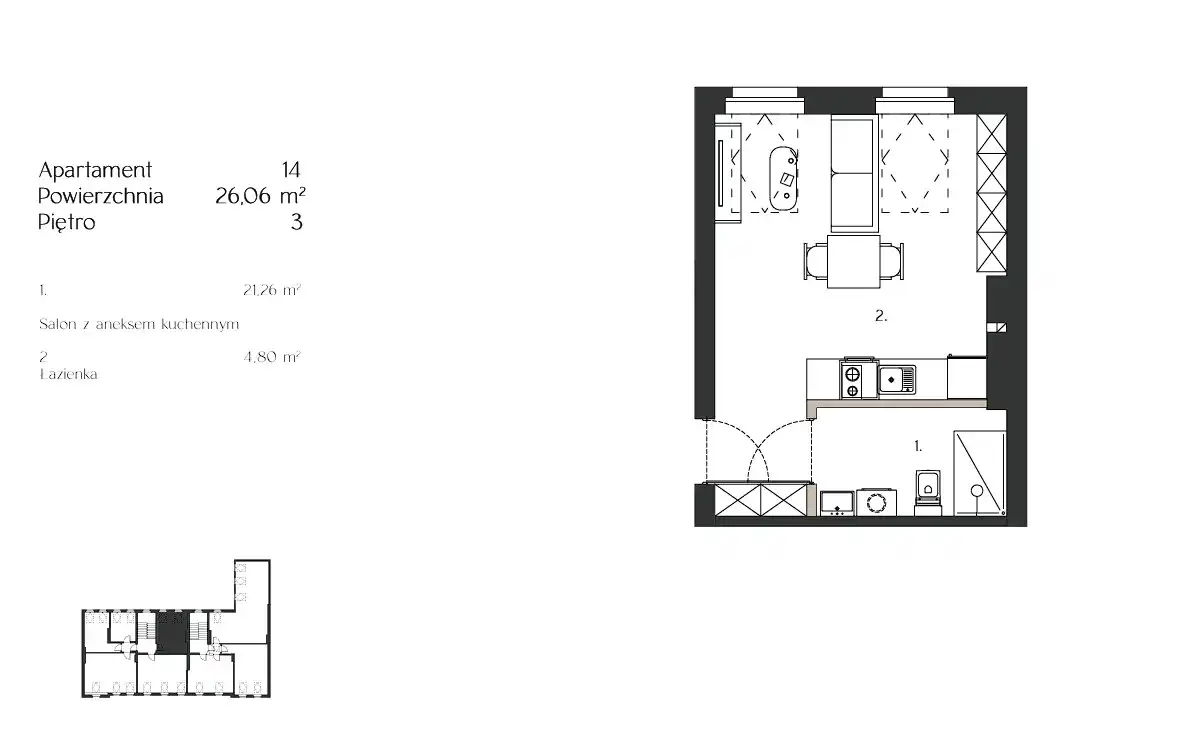- Charakterystyka mieszkania 26.23 m2, 1 pokój