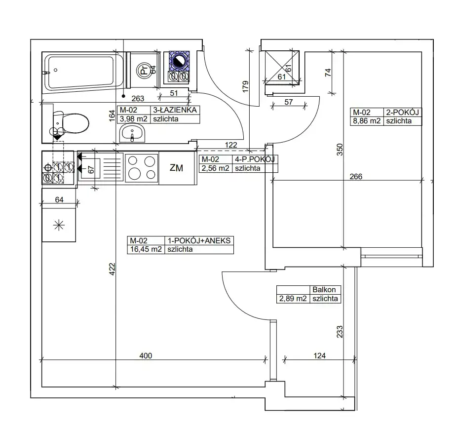 - Charakterystyka mieszkania 31.85 m2, 2 pokoje