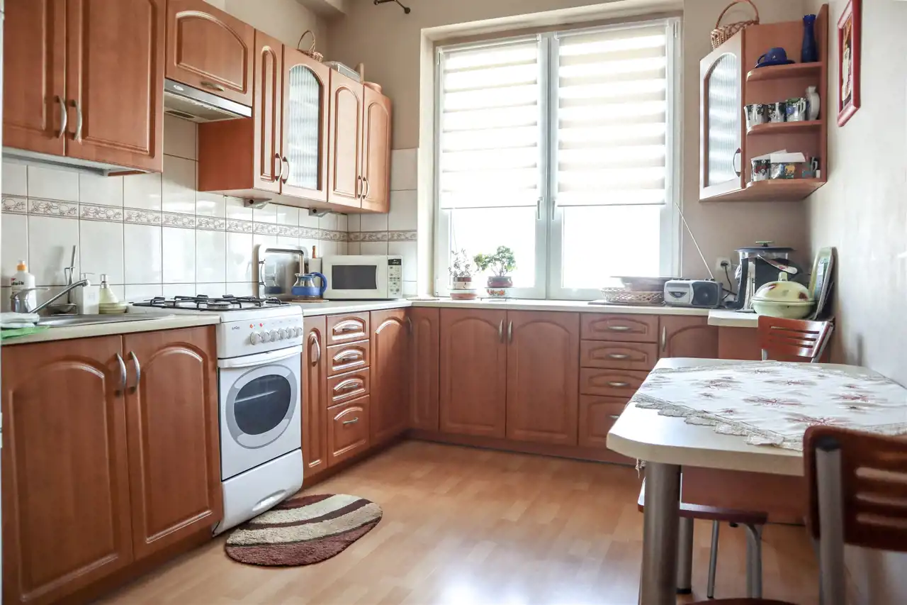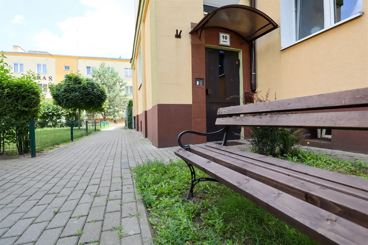 Układ mieszkania idealny – jasny salon (17 m²) z ekspozycją południową zapewnia mnóstwo światła i przyjemną przestrzeń do odpoczynku, a sypialnia (14 m²) położona od strony północnej gwarantuje chłód nawet w najbardziej upalne dni. Oddzielna kuchnia (aż 10 m²!) jest w pełni wyposażona – gotowanie tutaj to przyjemność. Do tego łazienka z wc, przestronny przedpokój oraz ogromna piwnica – aż 9,1 m², która pomieści naprawdę wszystko, czego nie chcesz trzymać w mieszkaniu.
