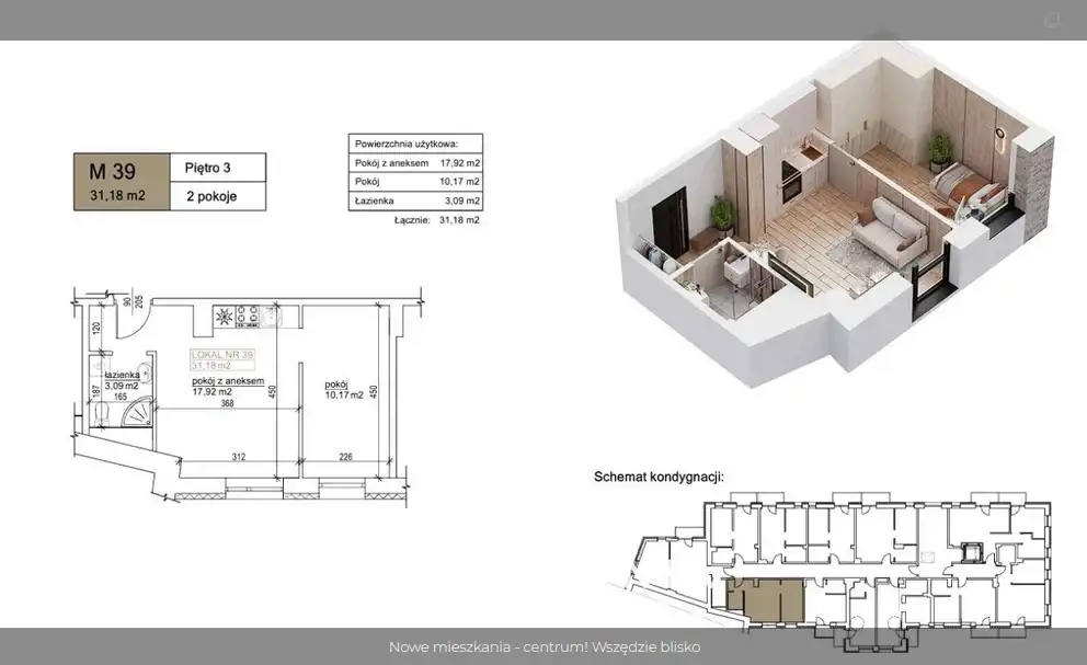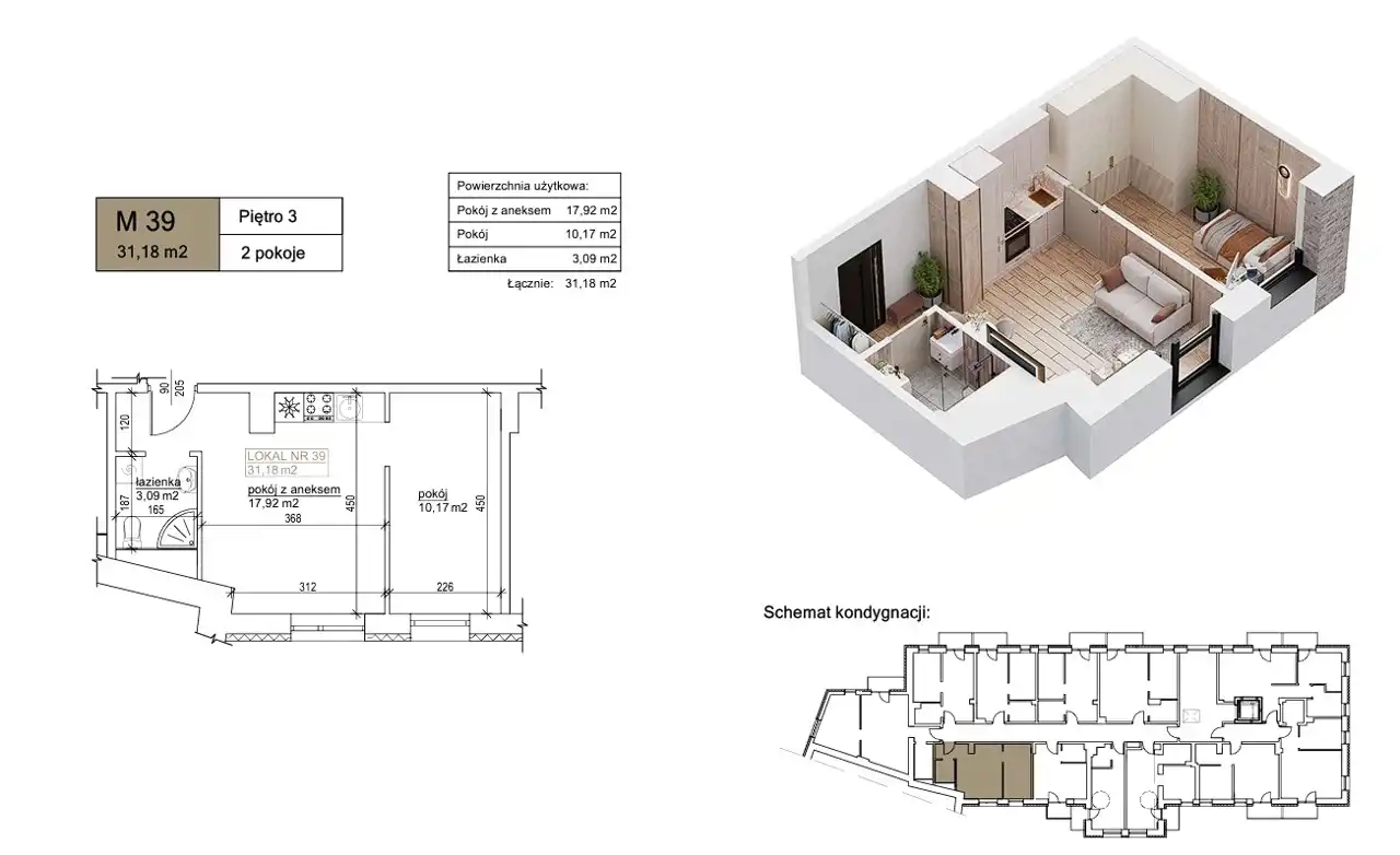 - Charakterystyka mieszkania 31.18 m2, 2 pokoje