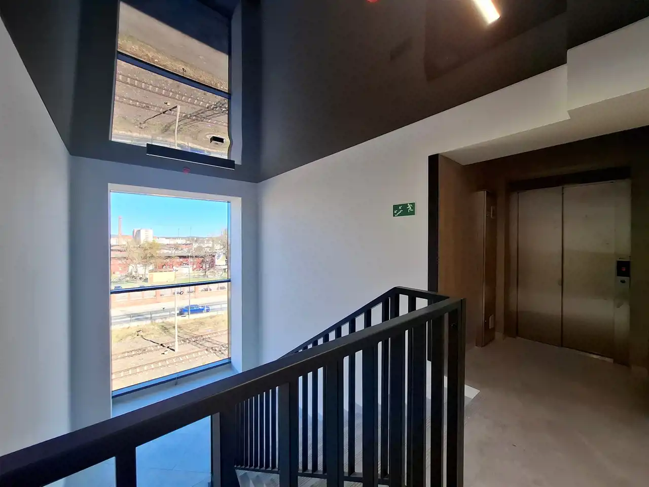 Duże, przestronne klatki schodowe zapewniają wygodę codziennego użytkowania, a ich przemyślany projekt i wysoka jakość wykonania harmonijnie wpisują się w nowoczesny design całego budynku.