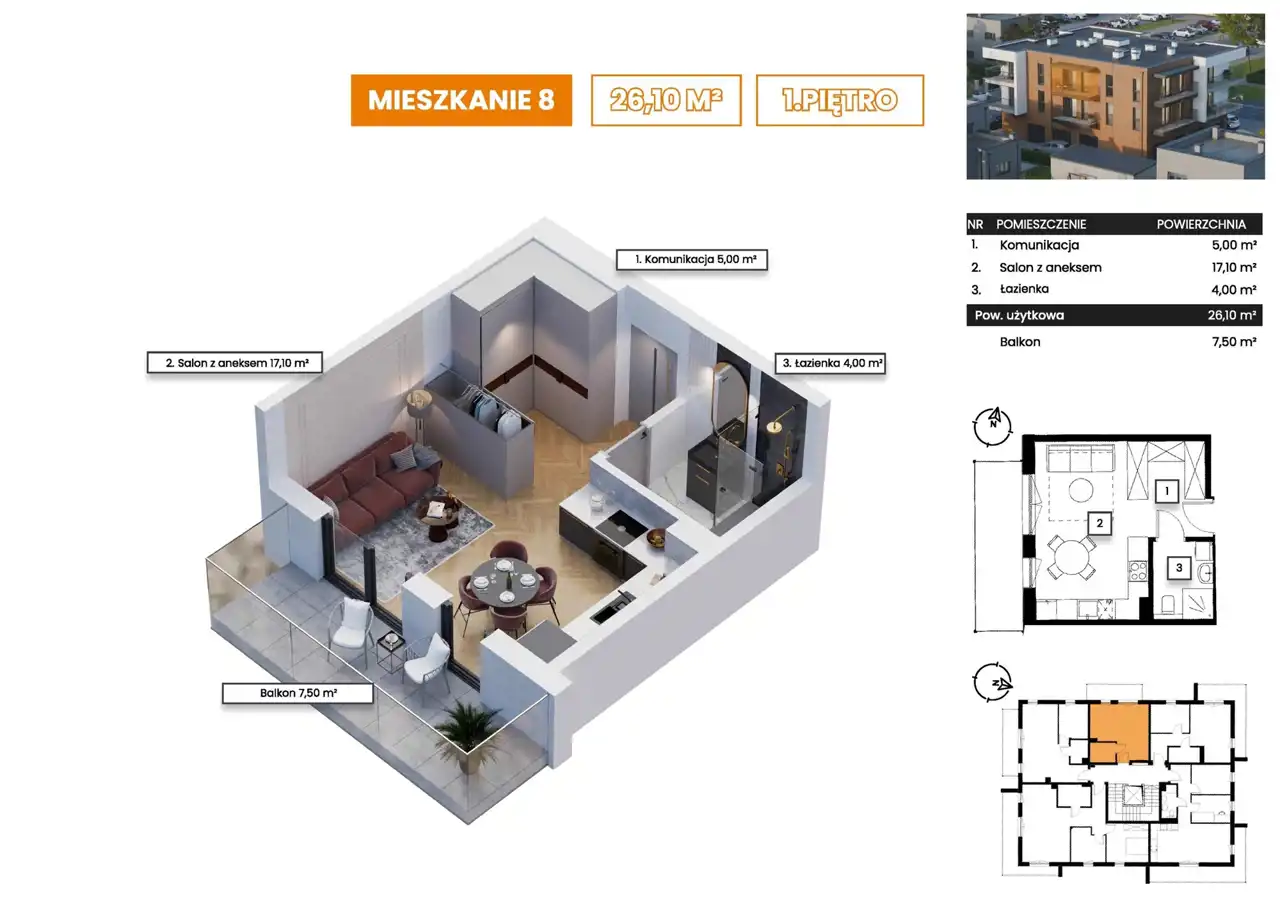 - Charakterystyka mieszkania 25.8 m2, 1 pokój