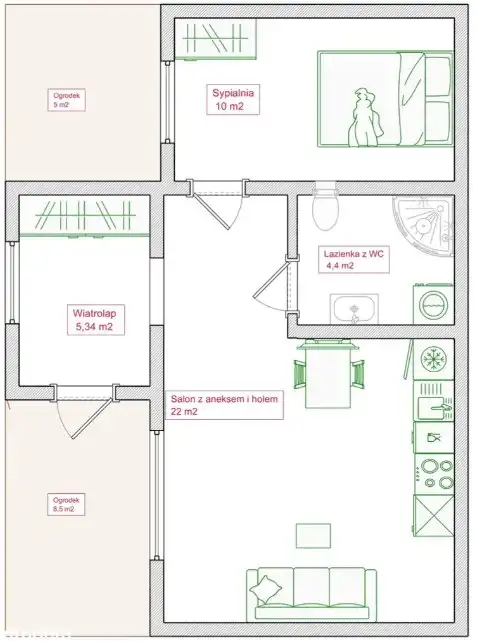 - Charakterystyka mieszkania 41 m2, 2 pokoje