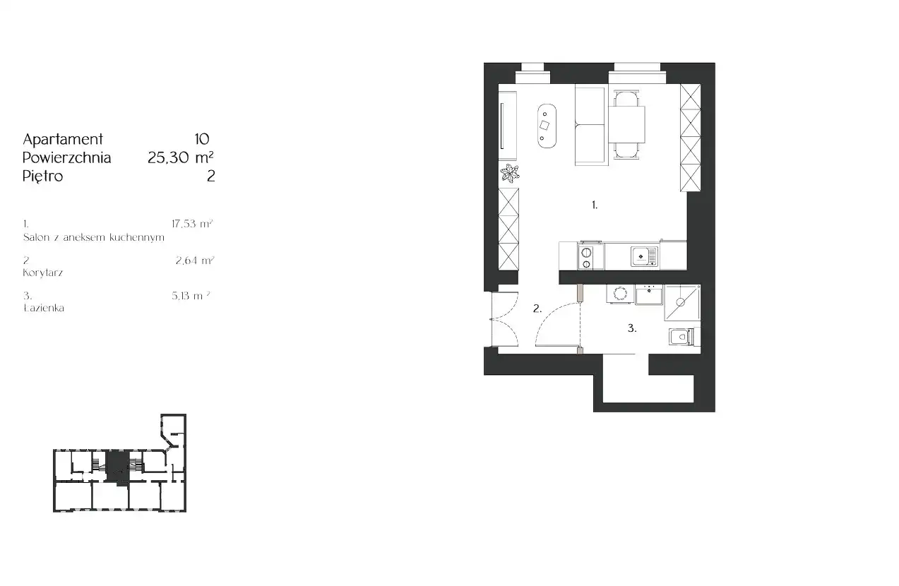 - Charakterystyka mieszkania 25.3 m2, 1 pokój