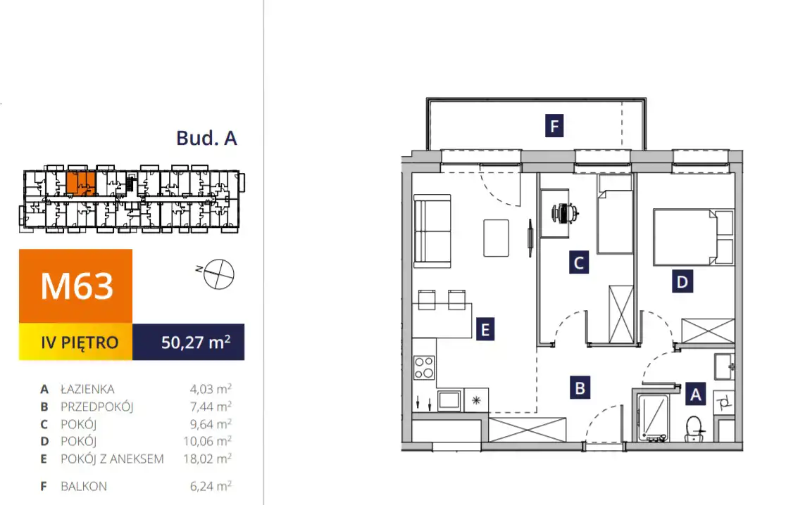 - Charakterystyka mieszkania 50.27 m2, 3 pokoje