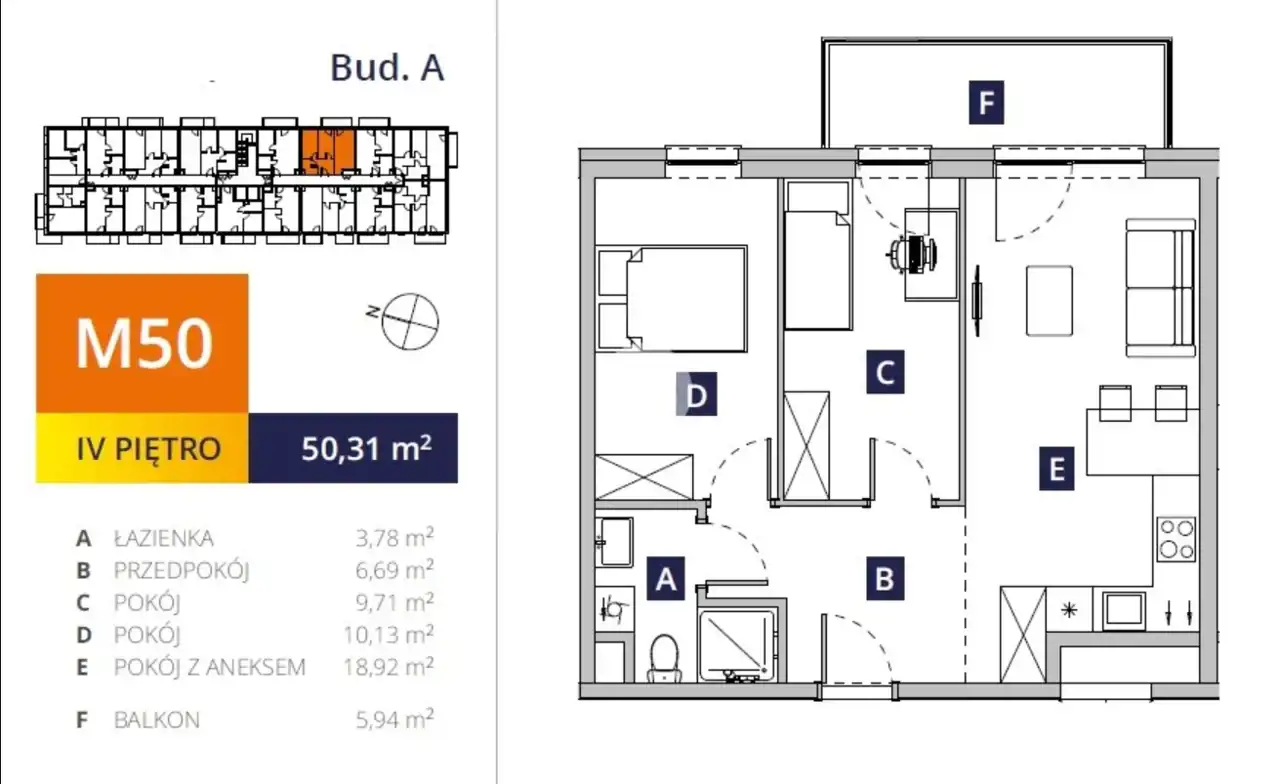 - Charakterystyka mieszkania 50.31 m2, 3 pokoje