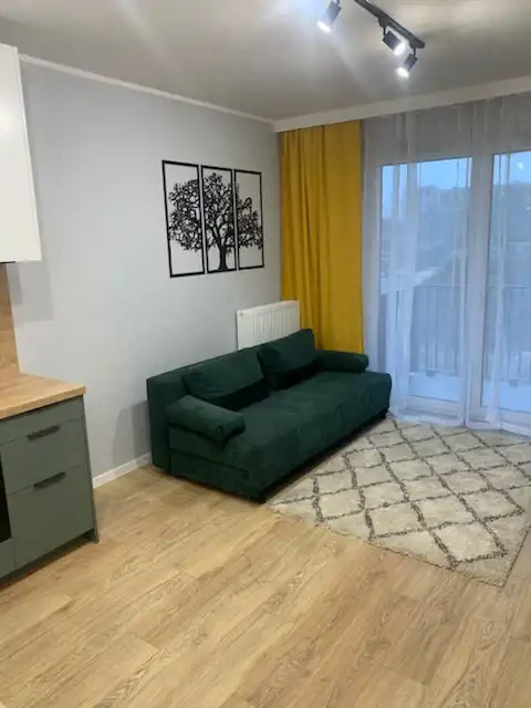 Jednopokojowy lokal mieszkalny o powierzchni 25 m kw., z balkonem, na pierwszym pietrze czteropiętrowego nowoczesnego, wyposażonego w windę i szereg różnych udogodnień apartamentowca.