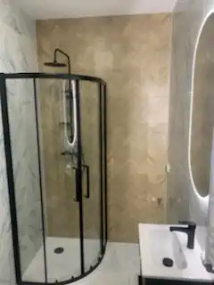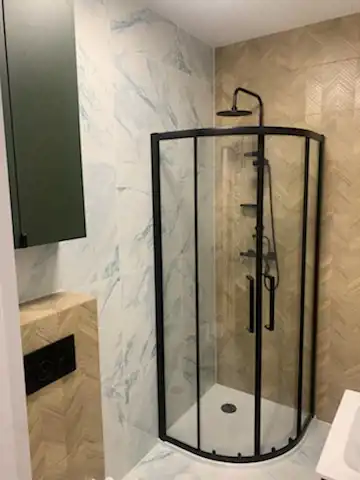 Ładna łazienka z kabiną prysznicową oraz funkcjonalnym przedpokojem z meblami w zabudowie może stać się Twoją odskocznią po trudach dnia codziennego.