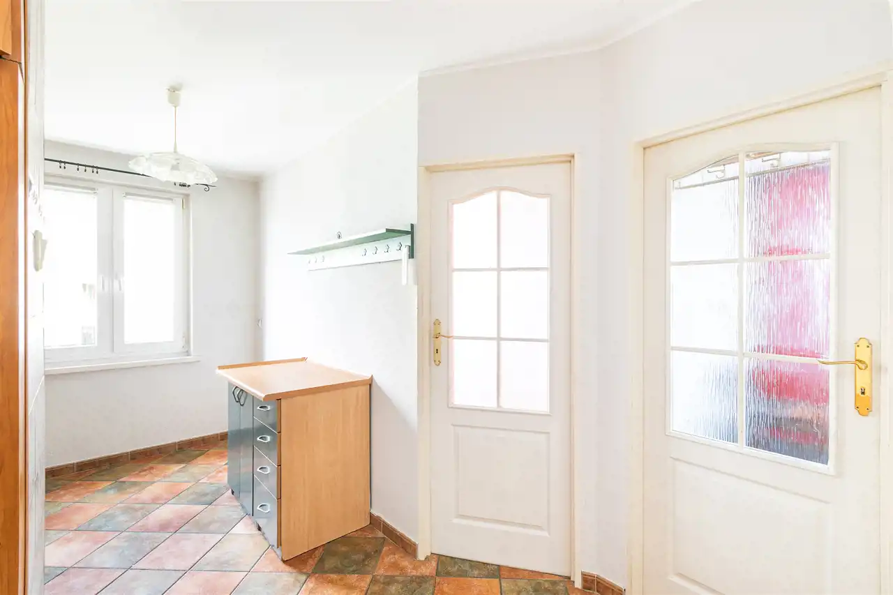 Składa się z jasnej kuchni, trzech pokoi, przedpokoju, łazienki z wc.
